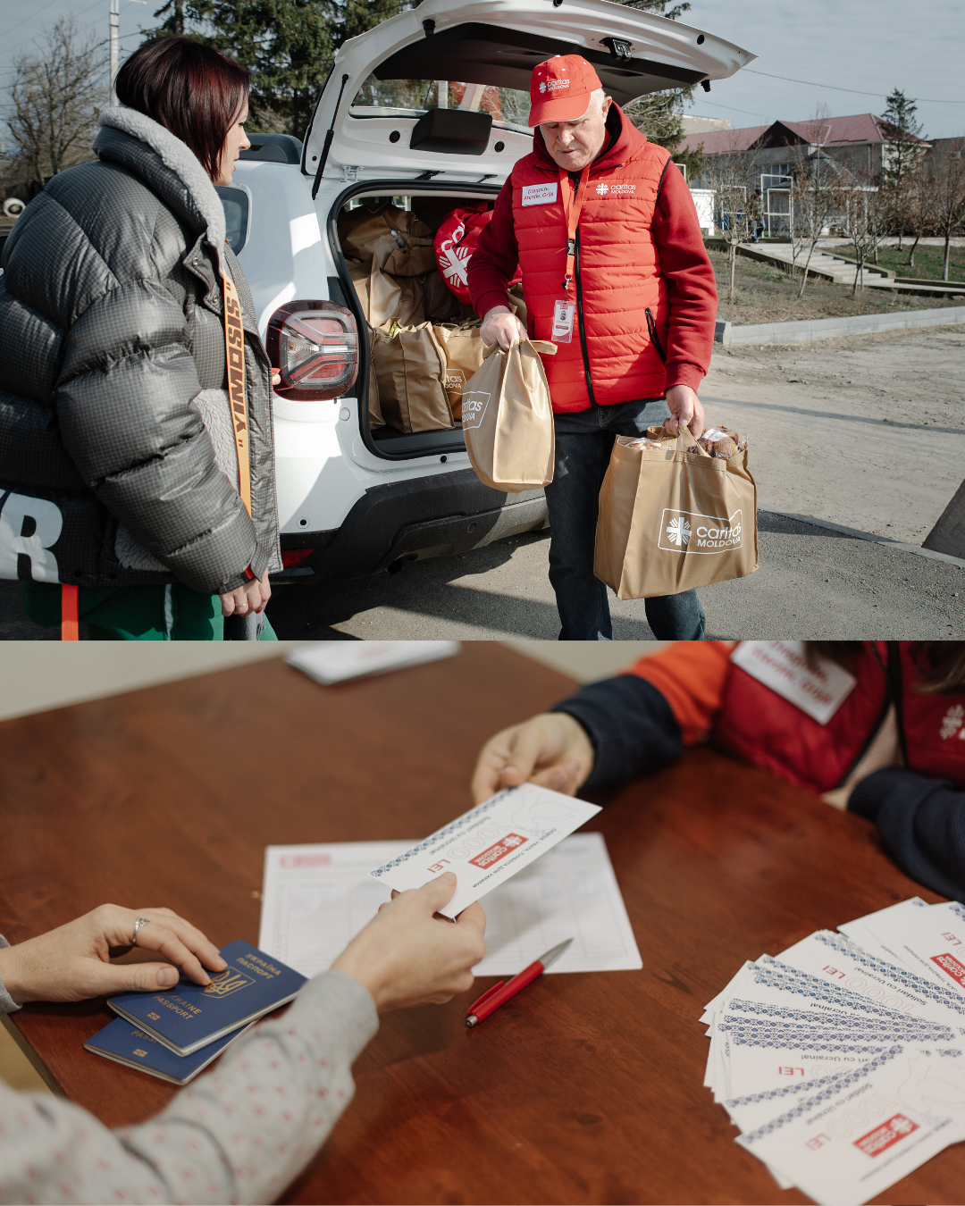 În primele zile ale crizei, Caritas Moldova a fost prezentă în prima linie, la frontiera cu Ucraina, oferind sprijin imediat persoanelor aflate în proces de strămutare. Voluntari și angajați au intervenit prompt pentru a răspunde nevoilor urgente: apă, hrană, produse de primă necesitate, informații și orientare.